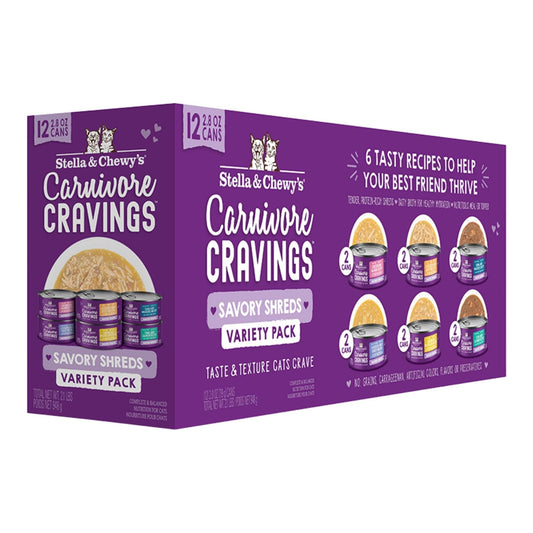 Stella and Chewys Cat Carnivore Shreds Variety Pack 2.8oz. (Case of 24)