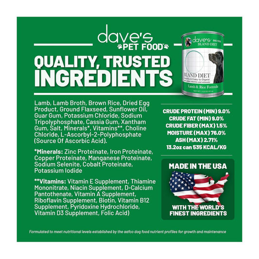 Dave's Dog Restricted Diet Bland Lamb & Rice Formula 13 oz (Case of 12)