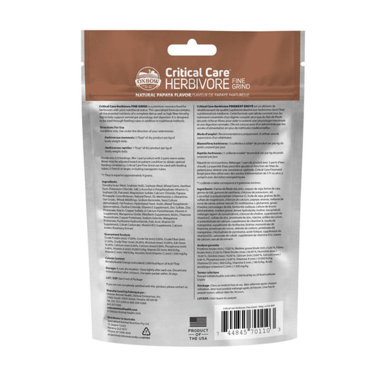 Oxbow Animal Health Critical Care Herbivore Fine Grind Feeding Formula 100g, Papaya, 1ea/3.53oz.