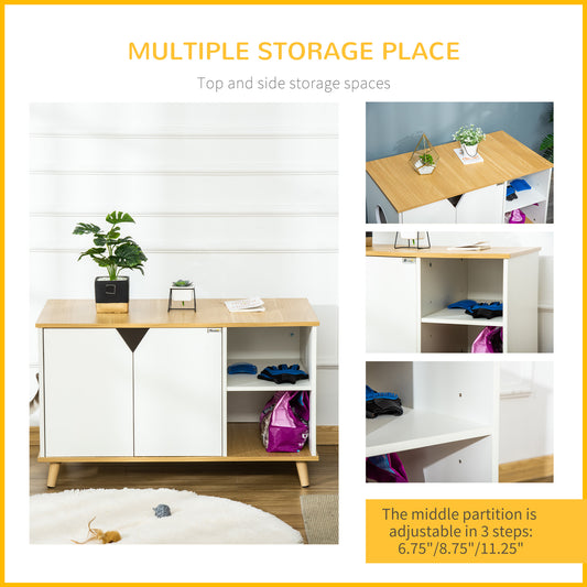 PawHut Cat Washroom with Damping Hinge, Multiple Storage Places, Adjustable Partition