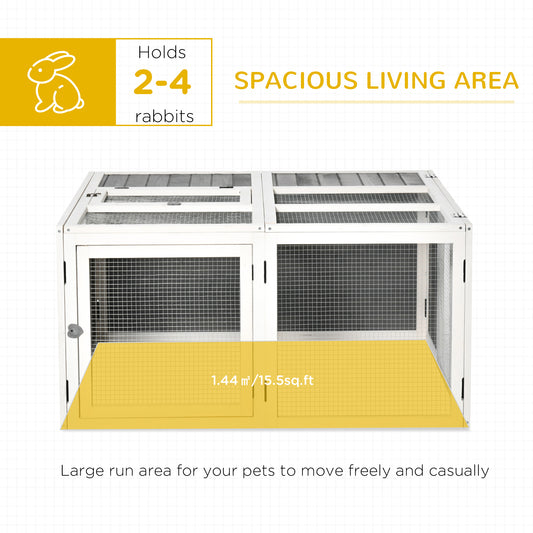 PawHut Wooden Rabbit Hutch with Openable Foldable Top for 1-4 Bunnies