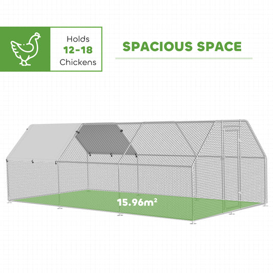 PawHut Large Chicken Coop Metal Chicken Run with Waterproof and Anti-UV Cover, Flat Shaped Walk-in Fence Cage Hen House for Outdoor and Yard Farm Use, 1.3" Tube Diameter, 9' x 18.5' x 6.5'