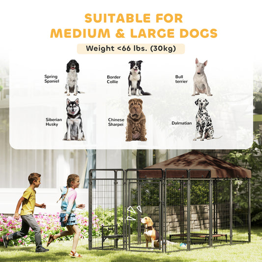PawHut 6' x 4' Dog Kennel, Outdoor Dog Playpen Run with Waterproof, UV Resistant Canopy, Heavy-Duty Chain Link for Medium and Large Dogs