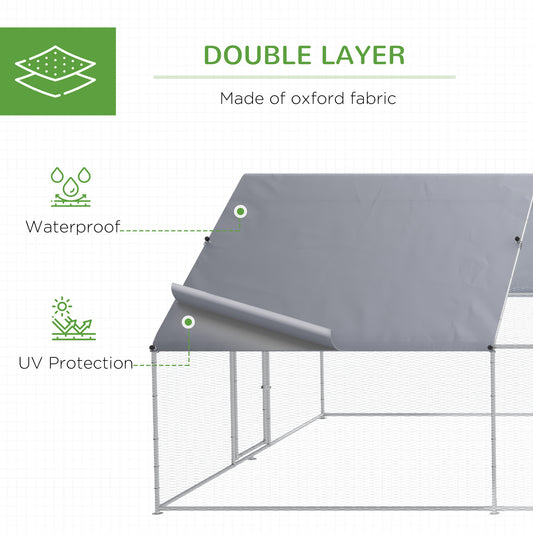 PawHut Large Chicken Coop Metal Chicken Run with Waterproof and Anti-UV Cover, Flat Shaped Walk in Fence Cage Hen House for Outdoor and Yard Farm Use, 1" Tube Diameter, 9.2' x 18.7' x 6.4'