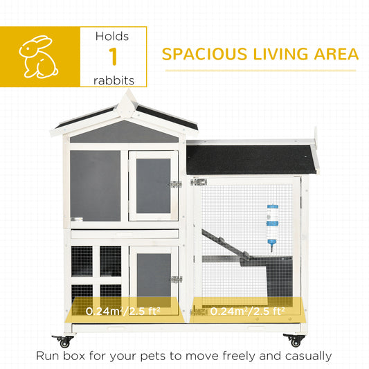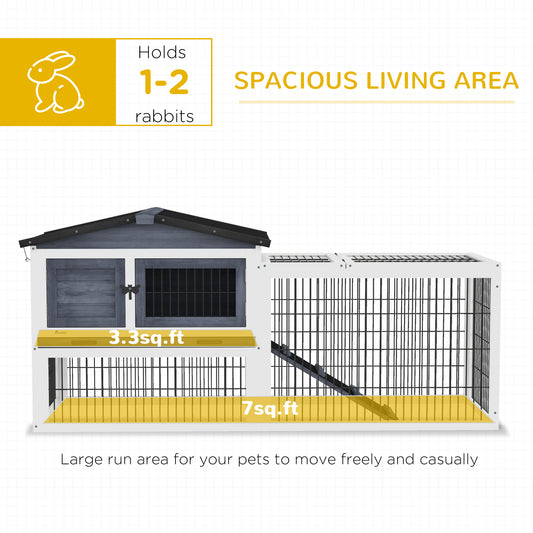 PawHut 43" Indoor Rabbit Hutch with an Extra Hideout, 2-Story Bunny Rabbit Cage Playpen Cottage with Space-Saving Design, Bunny Hutch with Removable Tray, Gray