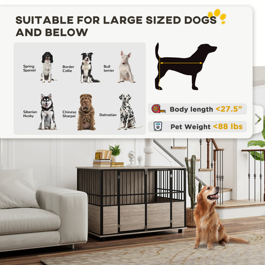PawHut Decorative Dog Kennel Indoor End Table, 46" Dog Crate Furniture w/ Double Doors for Small to Large Dogs up to 88 lbs.