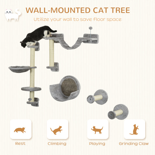 PawHut 5pc Cat Wall Shelves with Hammock, Perches, Ladder, Scratching Post