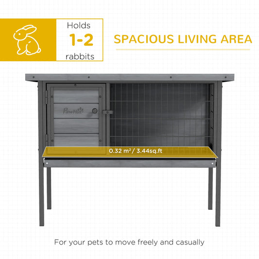 PawHut Wooden Rabbit Hutch Elevated with No Leak Tray, Openable Roof for Indoor/Outdoor, Gray