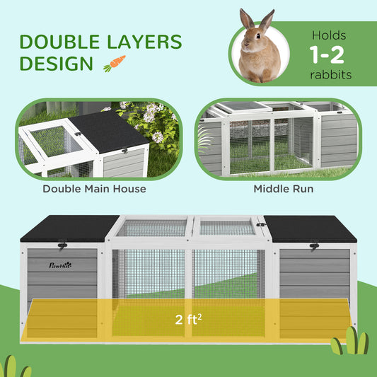 PawHut Outdoor 2-Tier Hutch with Openable Roof & Easy-Clean Trays