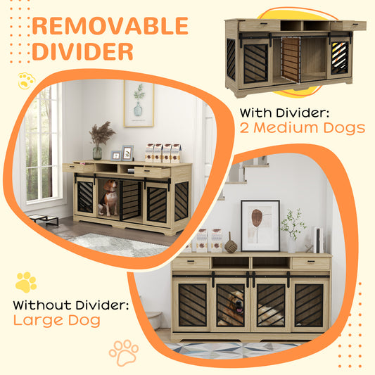 PawHut Modern Dog Kennel Furniture with Removable Divider, Storage, Drawers for 2 Medium Dogs or 1 Large Dog, Oak