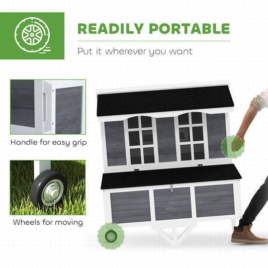 PawHut 43" Chicken Coop with Wheels, Chicken Tractor with Nesting Box, Windows, Pull-out Tray, Perches, for 2-4 Hens, Gray