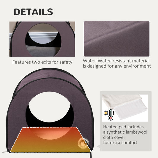 PawHut Dome Heated Cat House Portable and Waterproof Pet Shelter for Kitty in Winter, Brown
