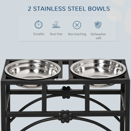 PawHut 17" Double Stainless Steel Heavy Duty Dog Food Bowl Elevated Pet Feeding Station