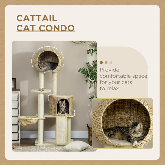 PawHut 59 Inch Cat Tree for Indoor Cats with Cat Condo, Hammock, Beige