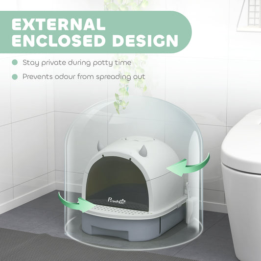 PawHut Covered Cat Litter Box w/Lid - Gray