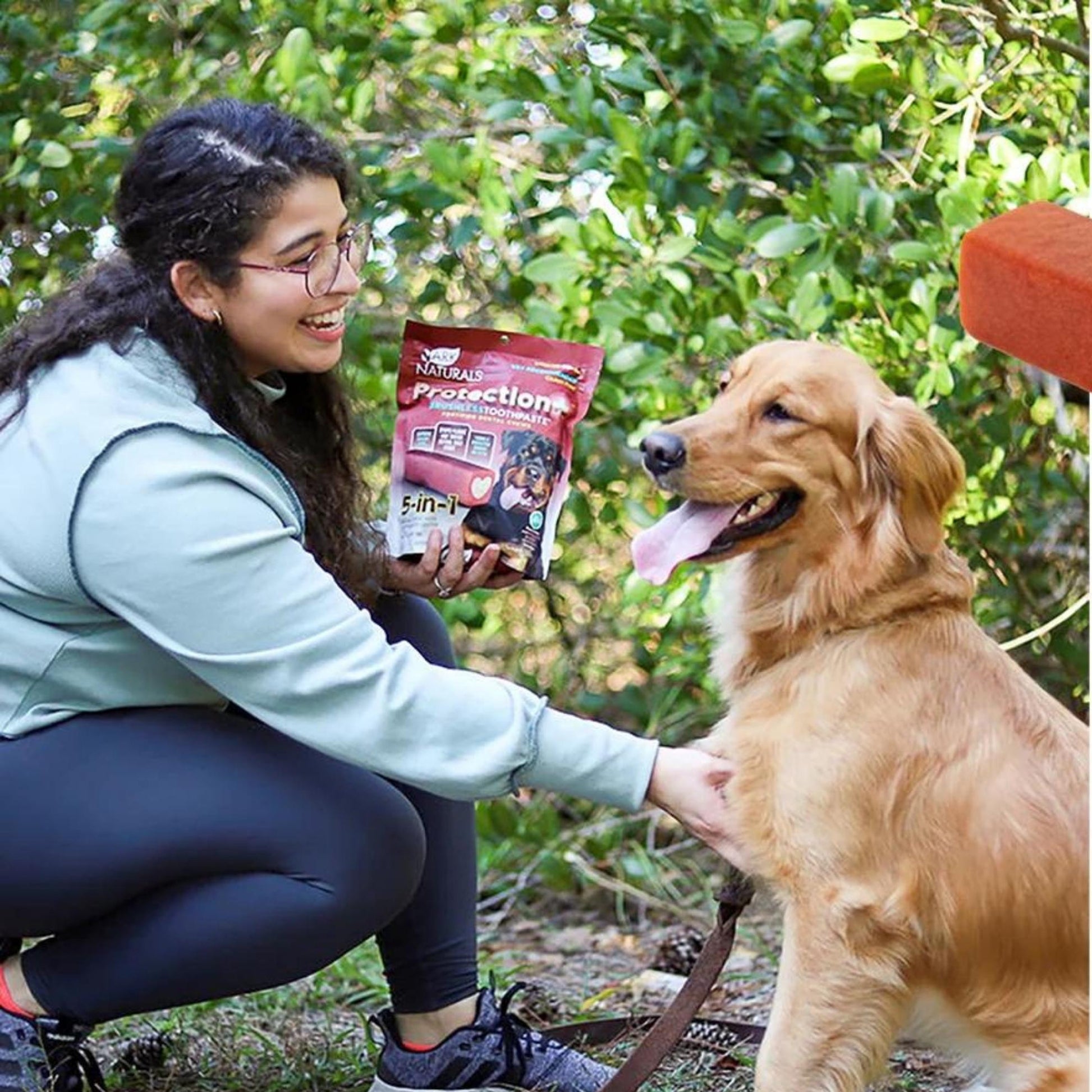 Ark Naturals Natural Protection+™ Brushless Toothpaste is a first-of-its-kind dental chew made with Astaxanthin. This unique formula helps stop plaque and tartar from sticking to your pet's teeth before the build up even starts! The toothpaste center supports polished teeth and helps freshen breath. Plus – it supports oral immune health and helps maintain healthy gums. Ranked Medium on our DENTA-METER™, they are perfect for your everyday chewer.