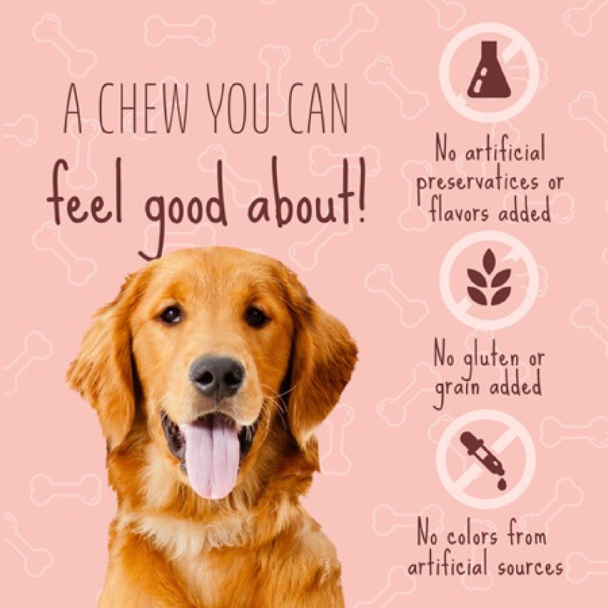 A CHEW YOU CAN FEEL GOOD ABOUT: No gluten, artificial flavors or preservatives added. No colors from artificial sources.