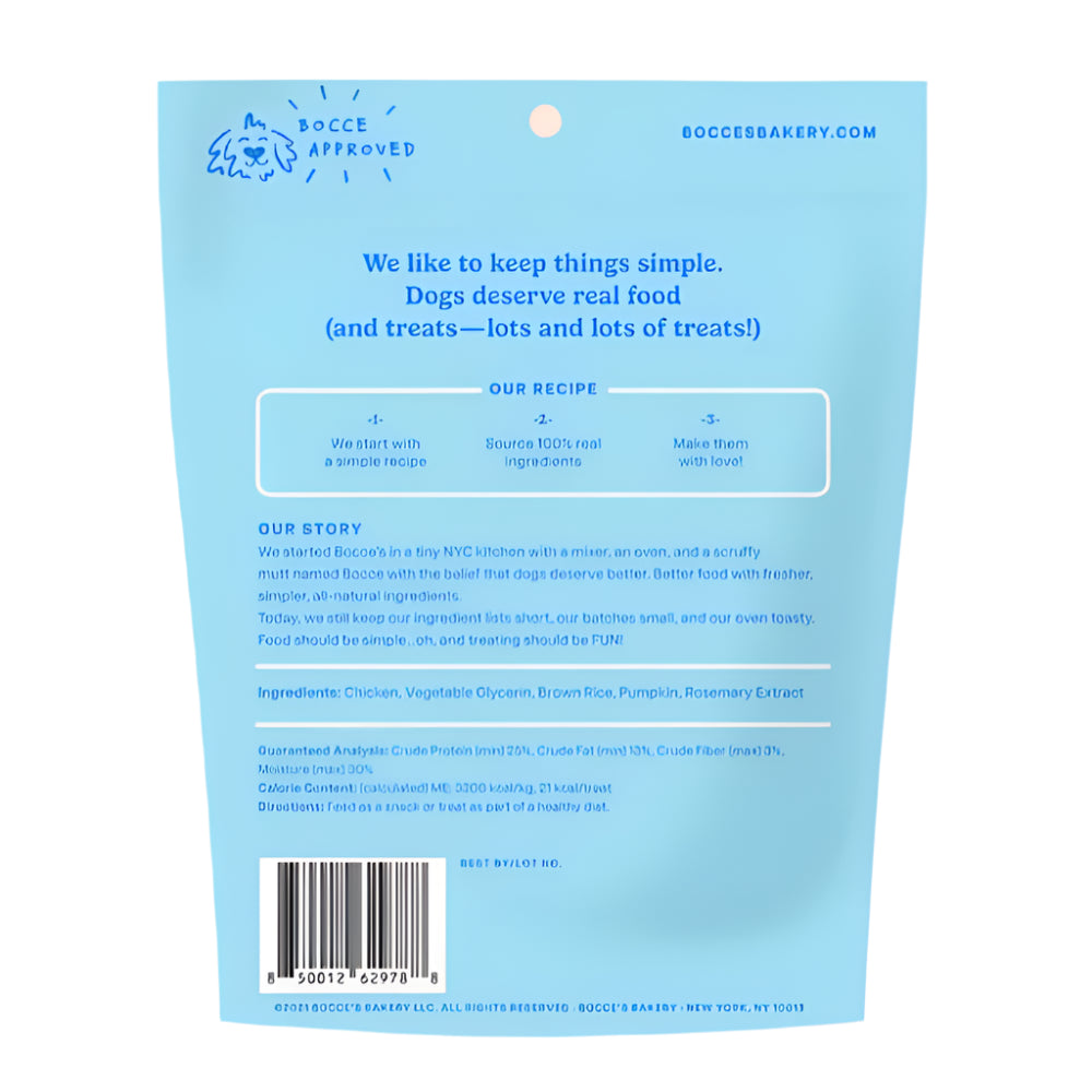 All-natural jerky sticks baked with USA chicken (our first ingredient!) and boosted with easy to digest pumpkin (no added salt or sugar— of course) in a chewy texture that will keep your pup wanting more! 25% protein too!