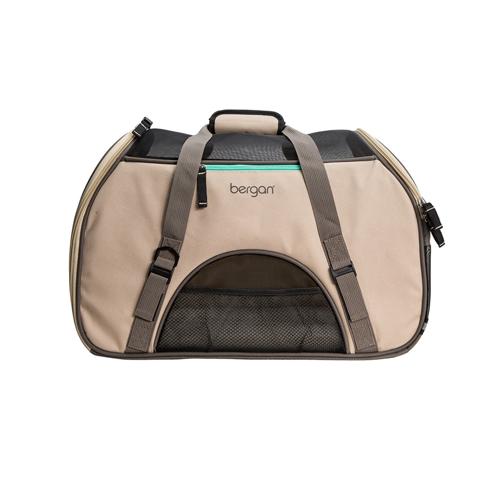 Our Comfort Carrier has a practical design, which creates stress free traveling. Its generous mesh panels ensure maximum breathability. This carrier also includes a washable fleece travel bed and light tan interior for a cushioned and cool ride. Small - 16"L x 8"W x 11"H and Large - 19"L x 10"W x 13"H. The Pet Connect feature gives your pet comfort on the go and the seat belt loop secures the carrier in the car. The Comfort Carrier is airline compatible. br/>Sold in Quantity of: 1