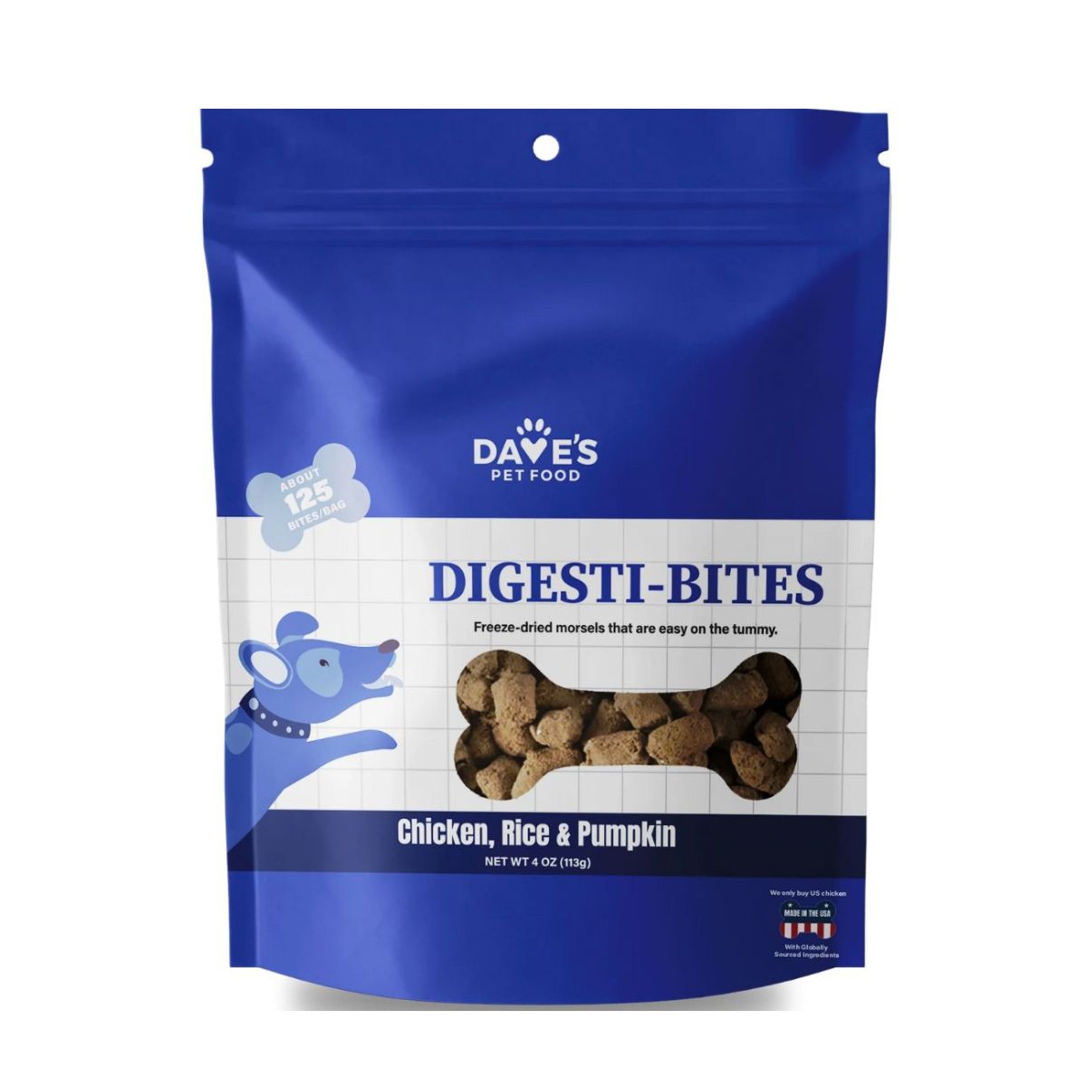 Dave's Pet Food Dog Digesti-Bites Freeze-Dried Chicken Rice & Pumpkin 12Oz