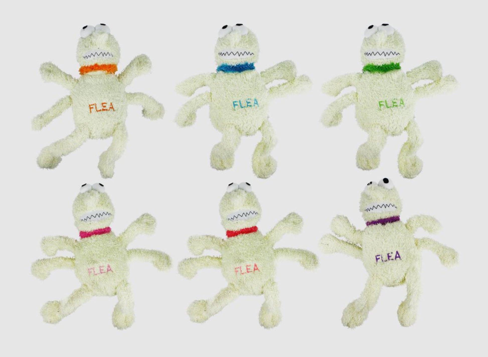 It's hard to imagine pesky fleas as cute, right While most customers hate when their dogs have fleas, this is a flea they'll be glad their dog has. Made of a super soft plush material and equipped with a built in squeaker, this toy is a great canine companion. Flea collar and word flea available in assorted colors. br/>Sold in Quantity of:1