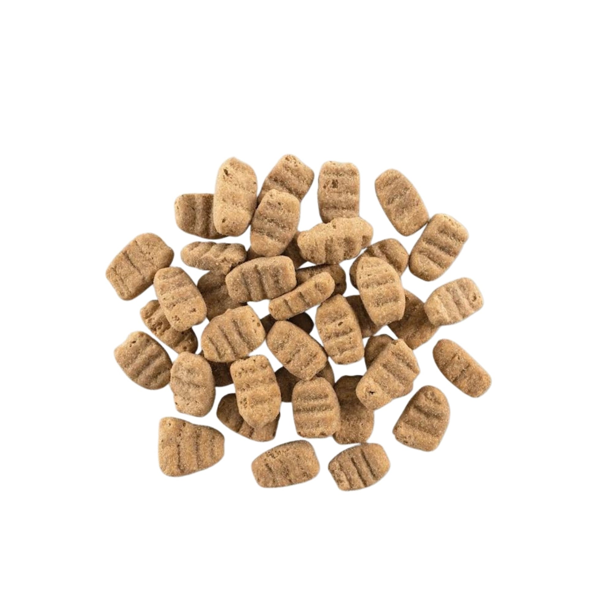 De-boned turkey, whole dried egg, potatoes, peas, potato flour, tapioca, pea flour, flaxseed, de-boned salmon, de-boned duck, sweet potatoes, natural flavour, monocalcium phosphate, canola oil (preserved with mixed tocopherols), apples, pea fibre, calcium carbonate, coconut oil (preserved with mixed tocopherols), suncured alfalfa, carrots, pumpkin, squash, bananas, blueberries, cranberries, blackberries, pomegranate, papayas, lentils, broccoli, spinach, dried chicory root, salt, choline chloride, taurine, vitamins (vitamin E supplement, L-ascorbyl-2-polyphosphate (a source of vitamin C), niacin, d-calcium pantothenate, vitamin A supplement, thiamine mononitrate, riboflavin, beta-carotene, vitamin B12 supplement, biotin, pyridoxine hydrochloride, vitamin D3 supplement, folic acid), minerals (ferrous sulphate, zinc proteinate, iron proteinate, selenium yeast, zinc oxide, copper sulphate, manganese proteinate, copper proteinate, manganous oxide, calcium iodate), dried Lactobacillus acidophilus fermentation product, dried Enterococcus faecium fermentation product, glucosamine hydrochloride, DL-methionine, L-lysine, potassium chloride, chondroitin sulphate, L-carnitine, New Zealand green mussels, yucca schidigera extract, dried rosemary, green tea extract, peppermint, parsley, rosehips, zedoary, dandelion, chamomile, ginger, turmeric, fennel, juniper berries, licorice, cardamom, cloves