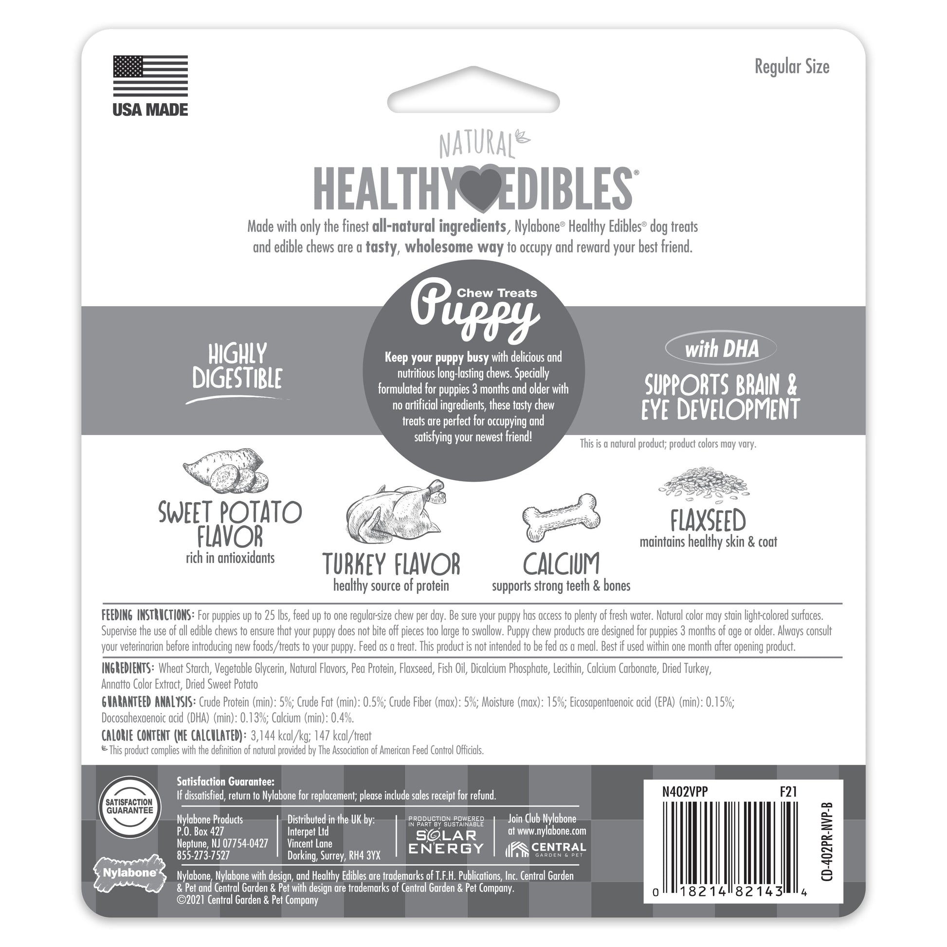Nylabone Healthy Edibles Puppy Turkey Sweet Potato Dog Chew Treats Turkey Sweet Potato, SMall/Regular Up To 25 Ibs. 3 ct