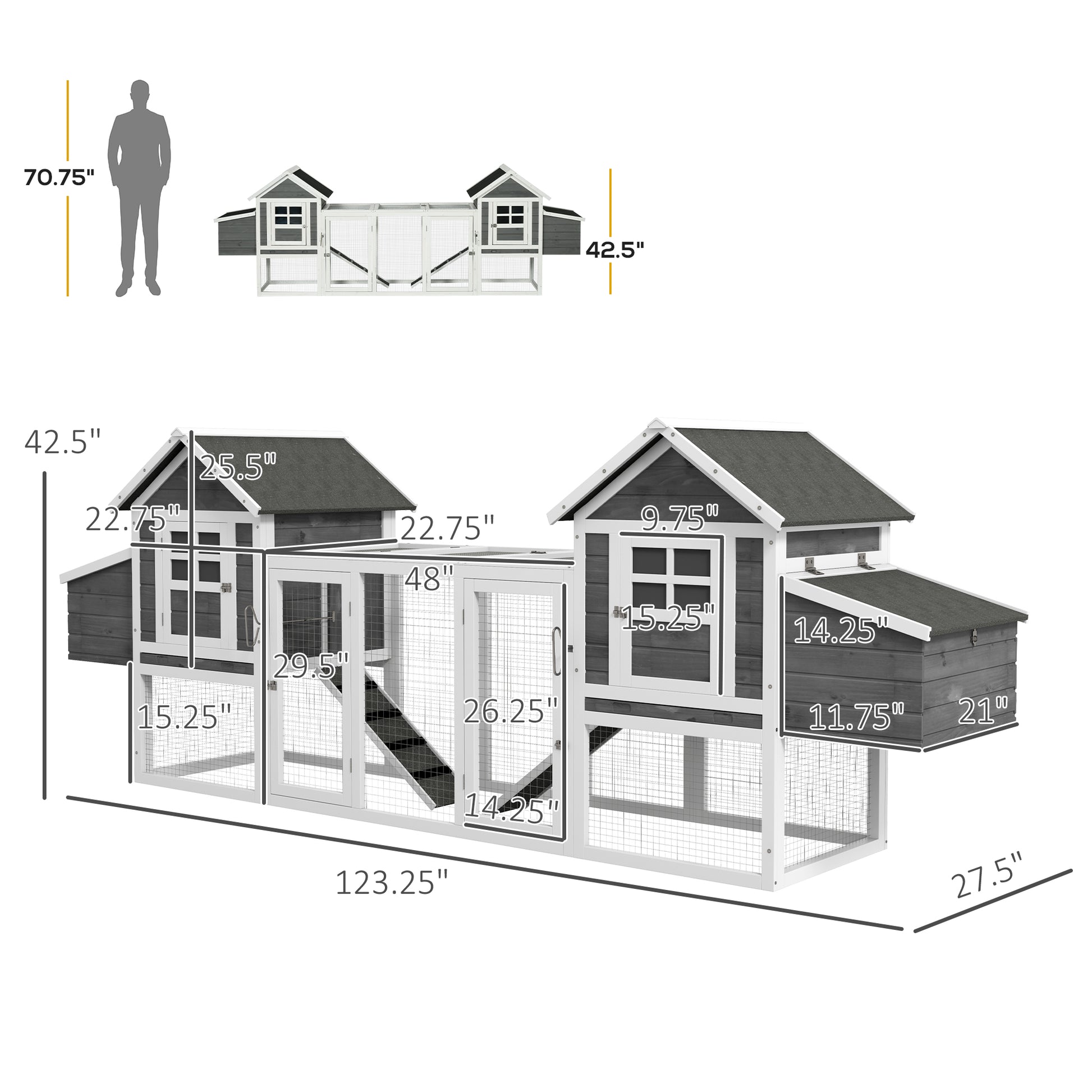 PawHut 124" Dual Chicken Coop, Large Chicken House, Gray