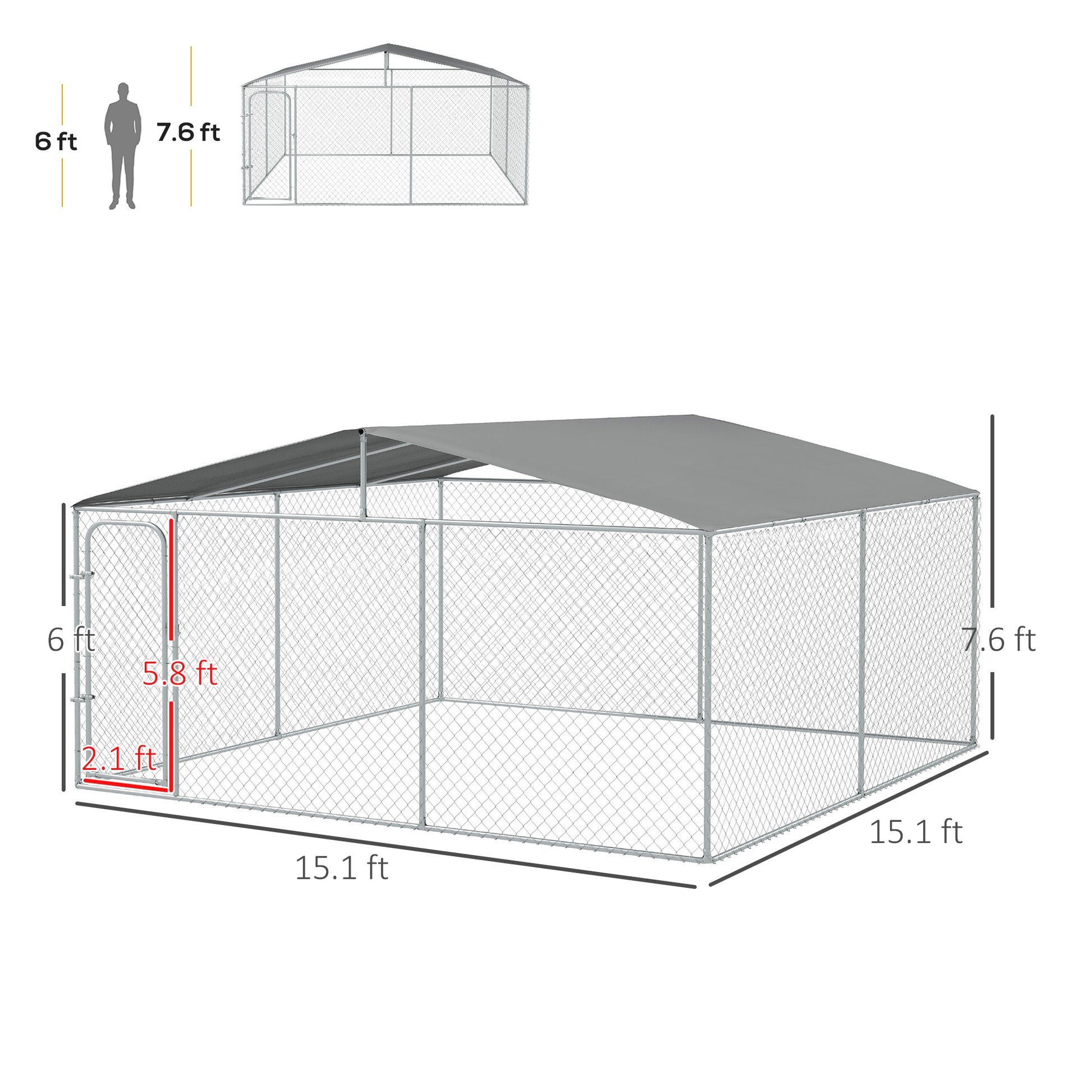 PawHut 15x15 Dog Kennel with Cover, Secure Outdoor Dog Fence, Galvanized Steel Frame for Backyard, Green