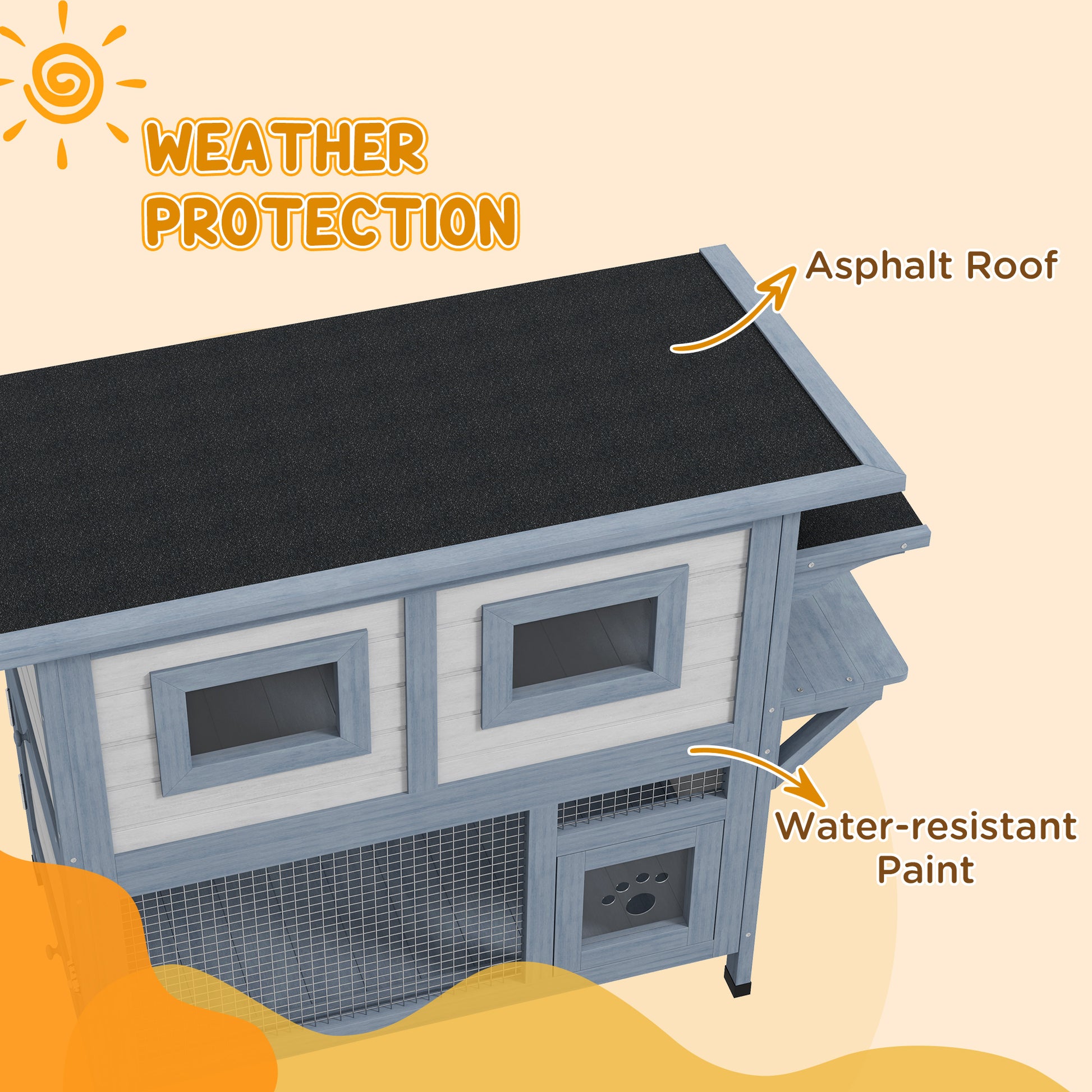 PawHut 2 Tier Outdoor Cat House Weatherproof with Escape Door, Asphalt Roof for Outside, Backyard, Light Gray