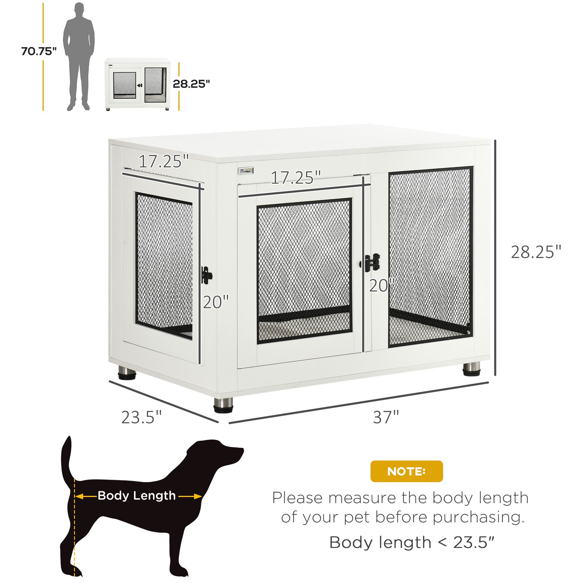 PawHut 37" Dog Crate Furniture with Cushion, Double Doors for Large Dogs, White