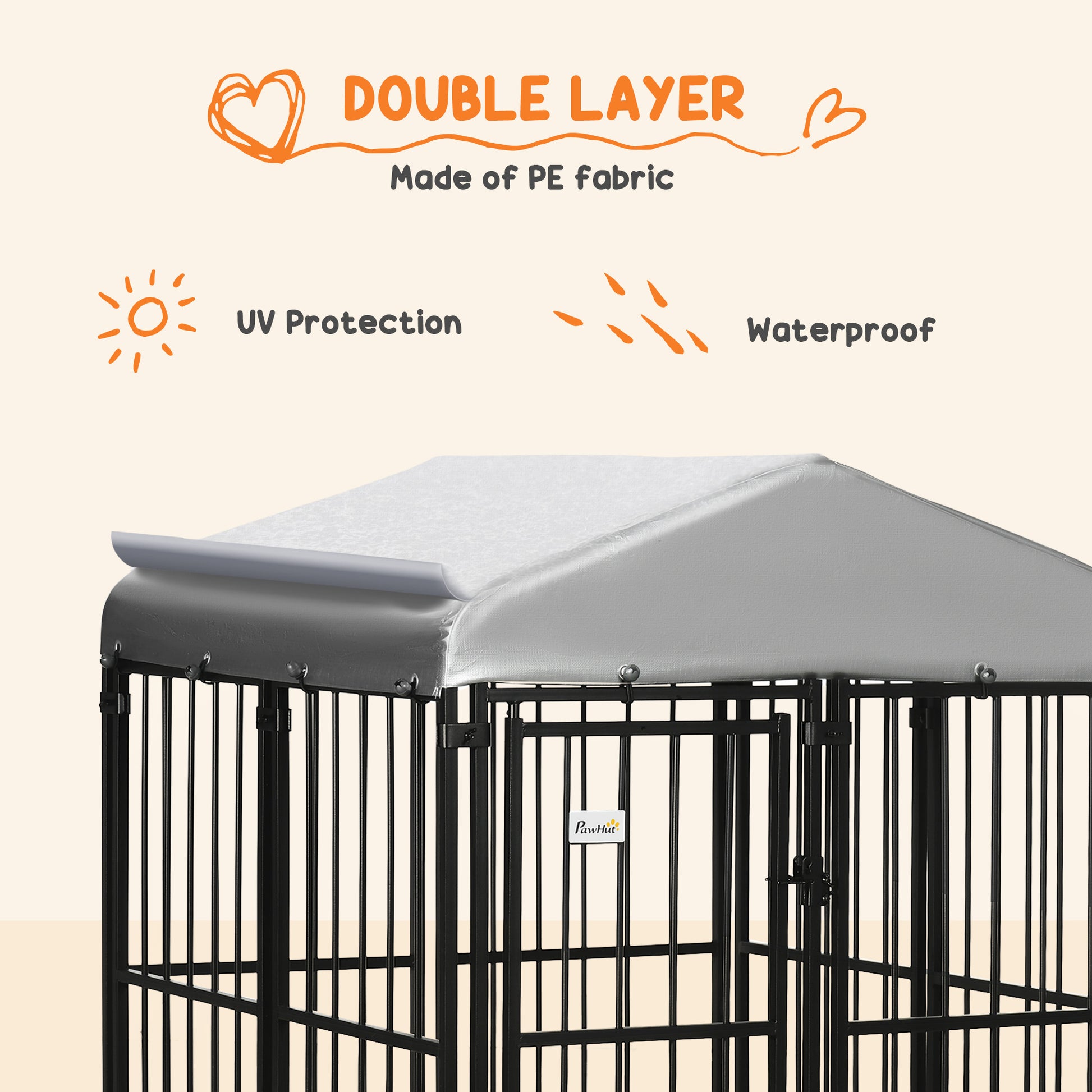 PawHut 4' x 4' Dog Kennel, Outdoor Dog Playpen Run with Waterproof, UV Resistant Canopy, Heavy-Duty Chain Link for Small and Medium Dogs