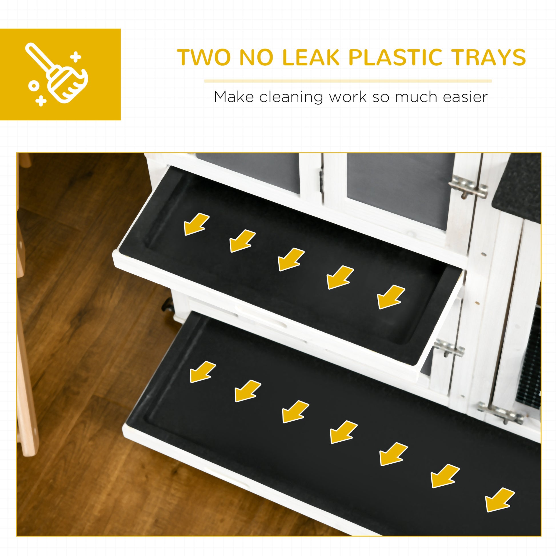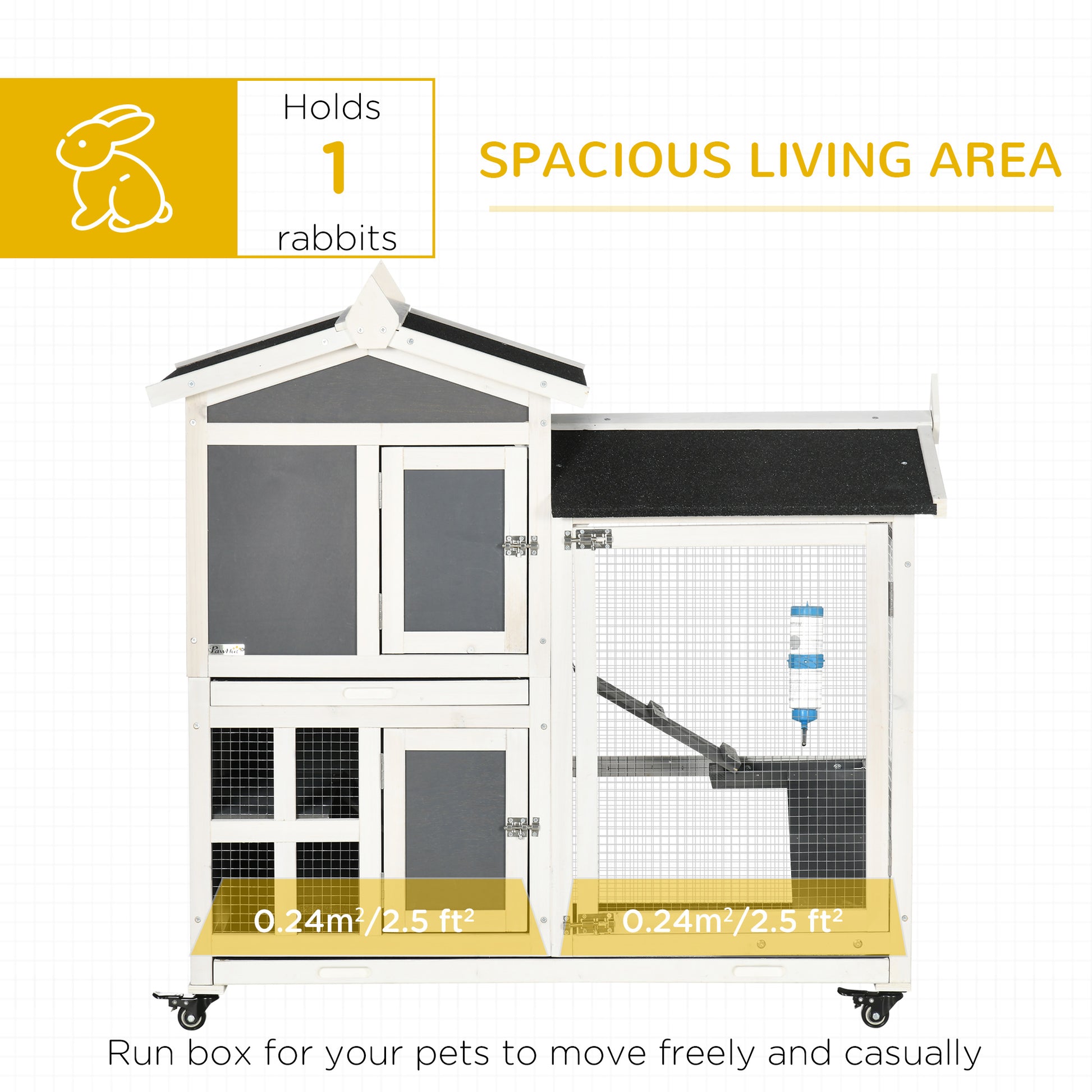 PawHut gives your furry friend a hutch with a cozy environment to relax in. Offer your bunny a homey twostory design featuring an extra dark hideout and a small spacesaving design. The wheels make it easy to push the steel bunny hutch into its spot, avoiding heavy lifting and allowing versatility of room setup. Made of solid fir wood and steel pipe for durable construction, providing a secure home.