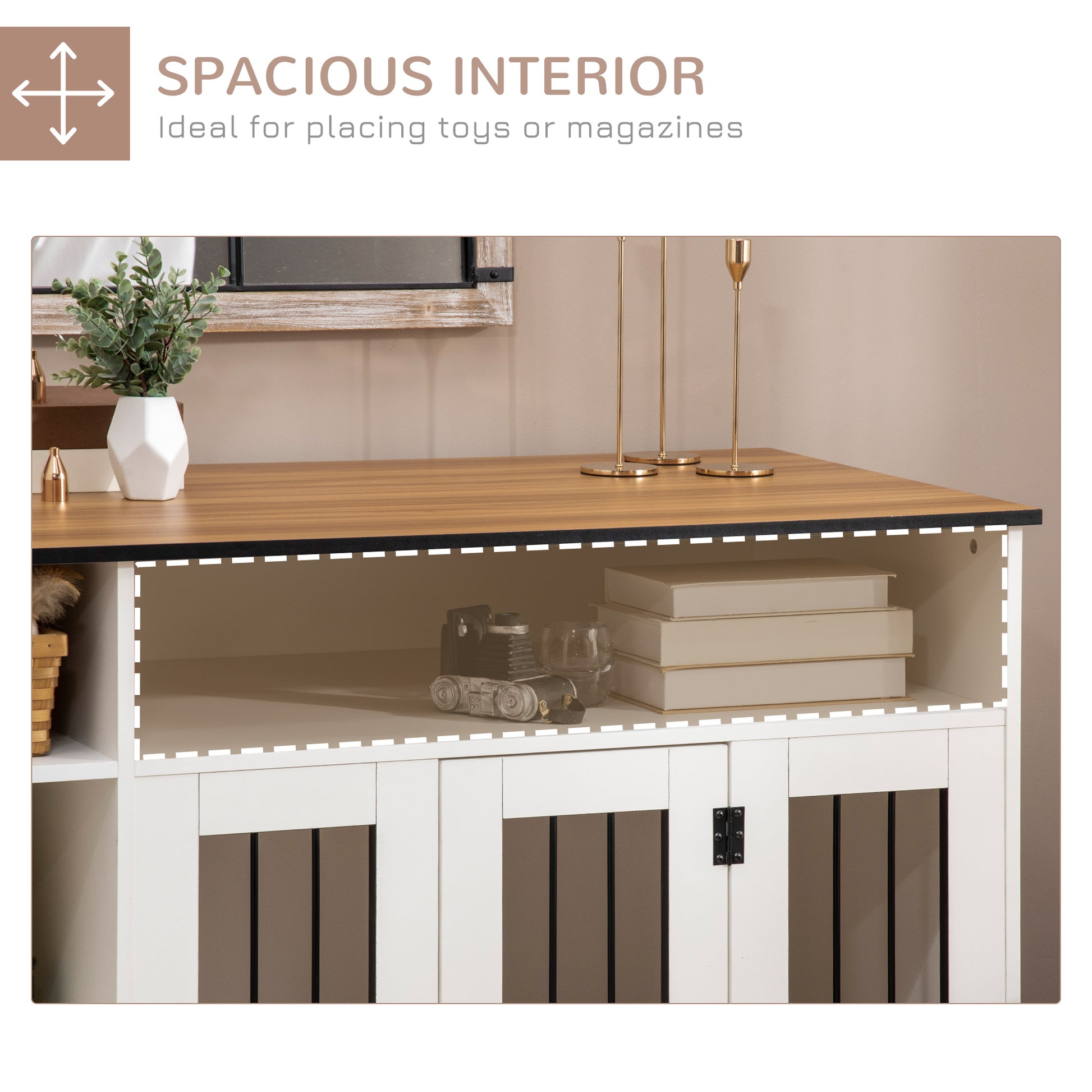 PawHut 47" Dog Crate Furniture with Storage, for Large Medium Dogs, White