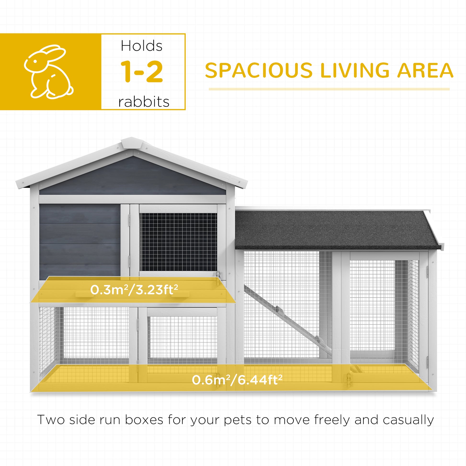 PawHut 58" Wooden Rabbit Hutch – Run, Tray, Asphalt Roof, Ramp, Lockable Doors (Gray)