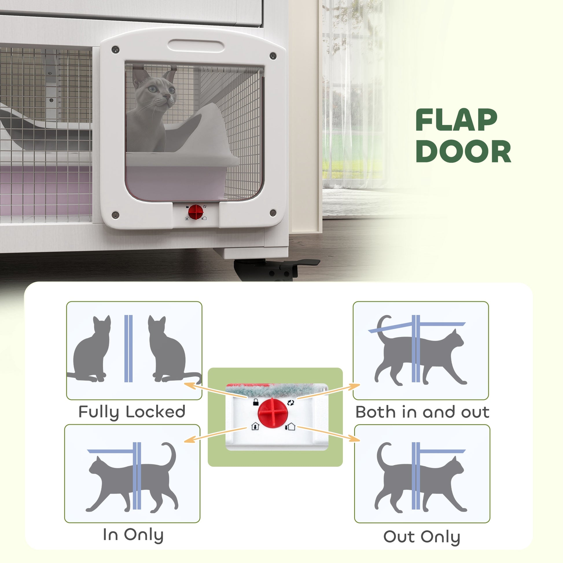 PawHut Cat House, Indoor Cat Enclosure on Wheels with Openable Top, 39", White