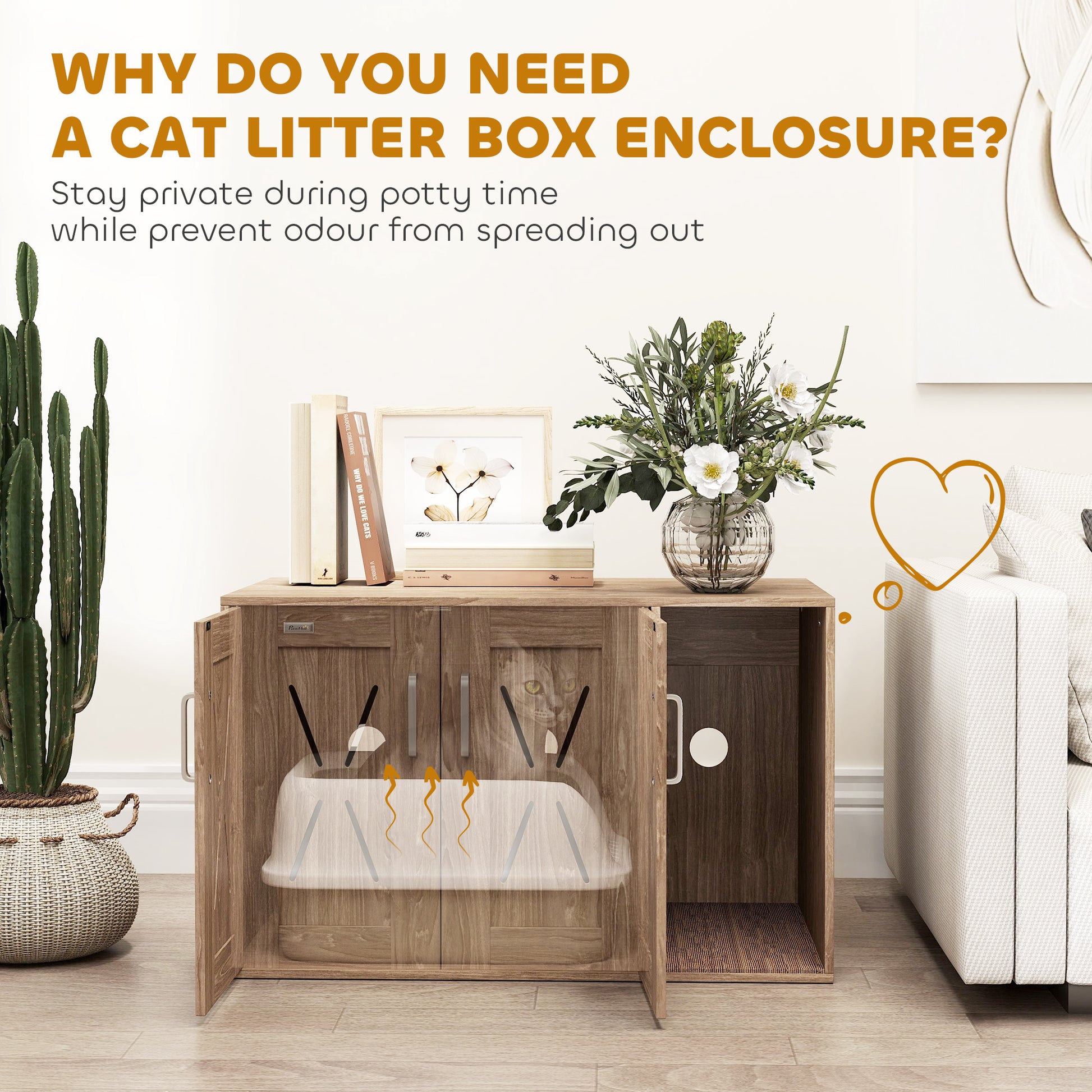 - Multifunctional as cat litter box enclosure or stylish side table