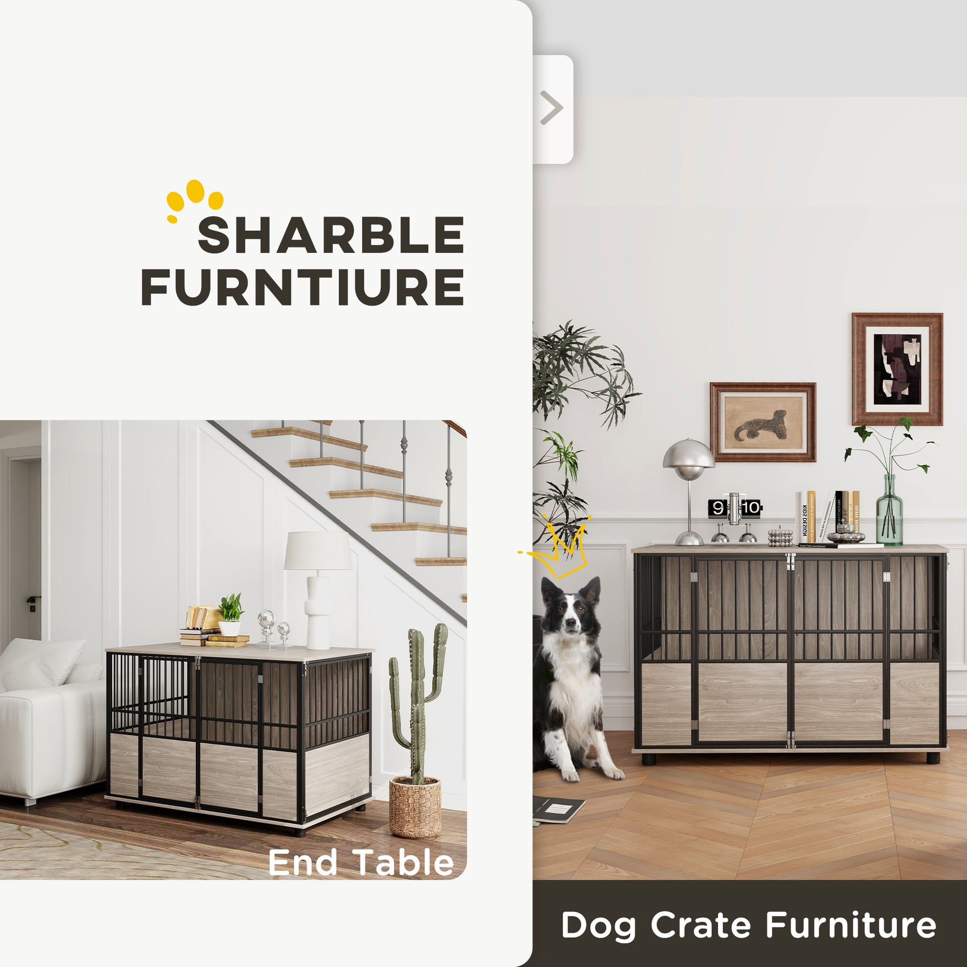PawHut Decorative Dog Kennel Indoor End Table, 46" Dog Crate Furniture w/ Double Doors for Small to Large Dogs up to 88 lbs.
