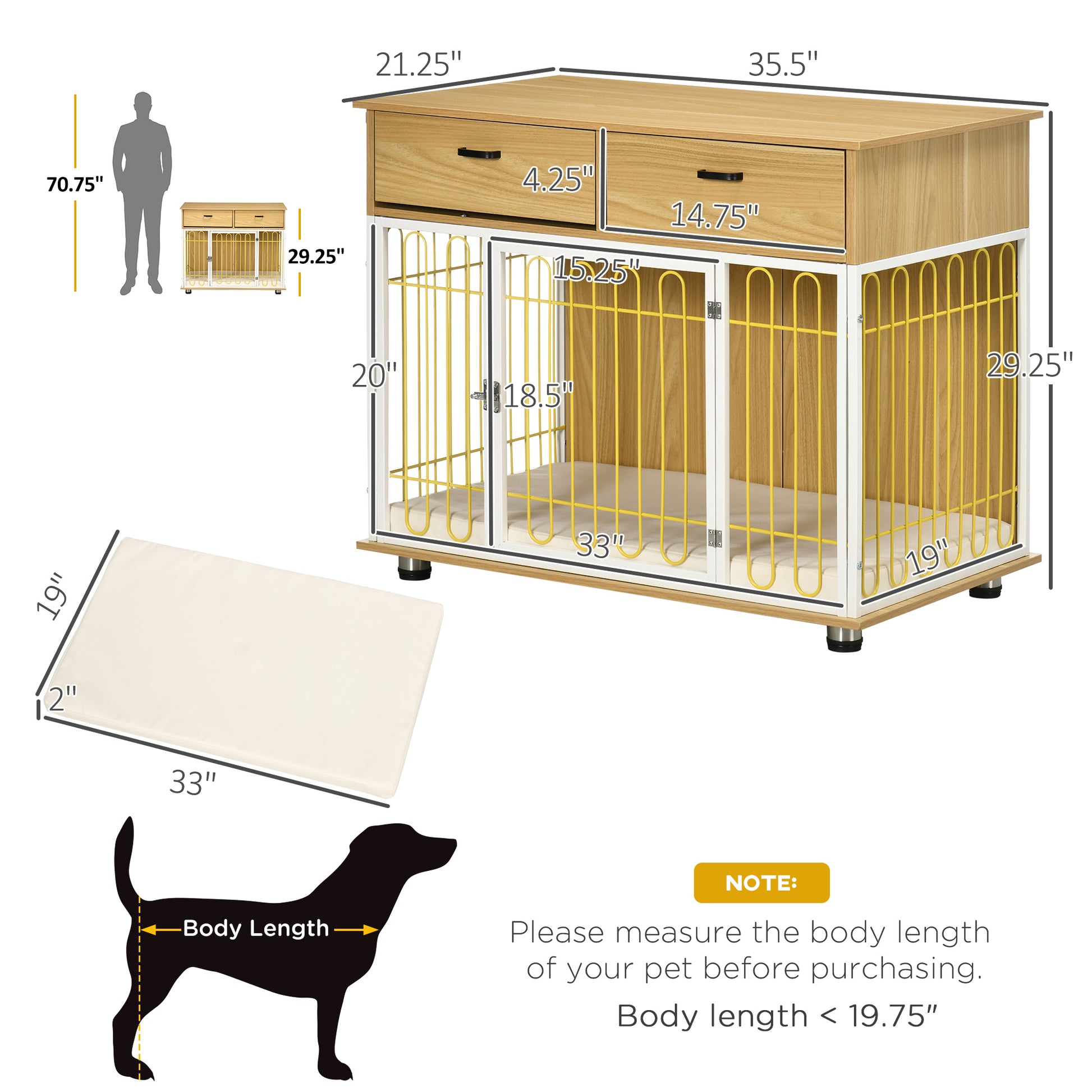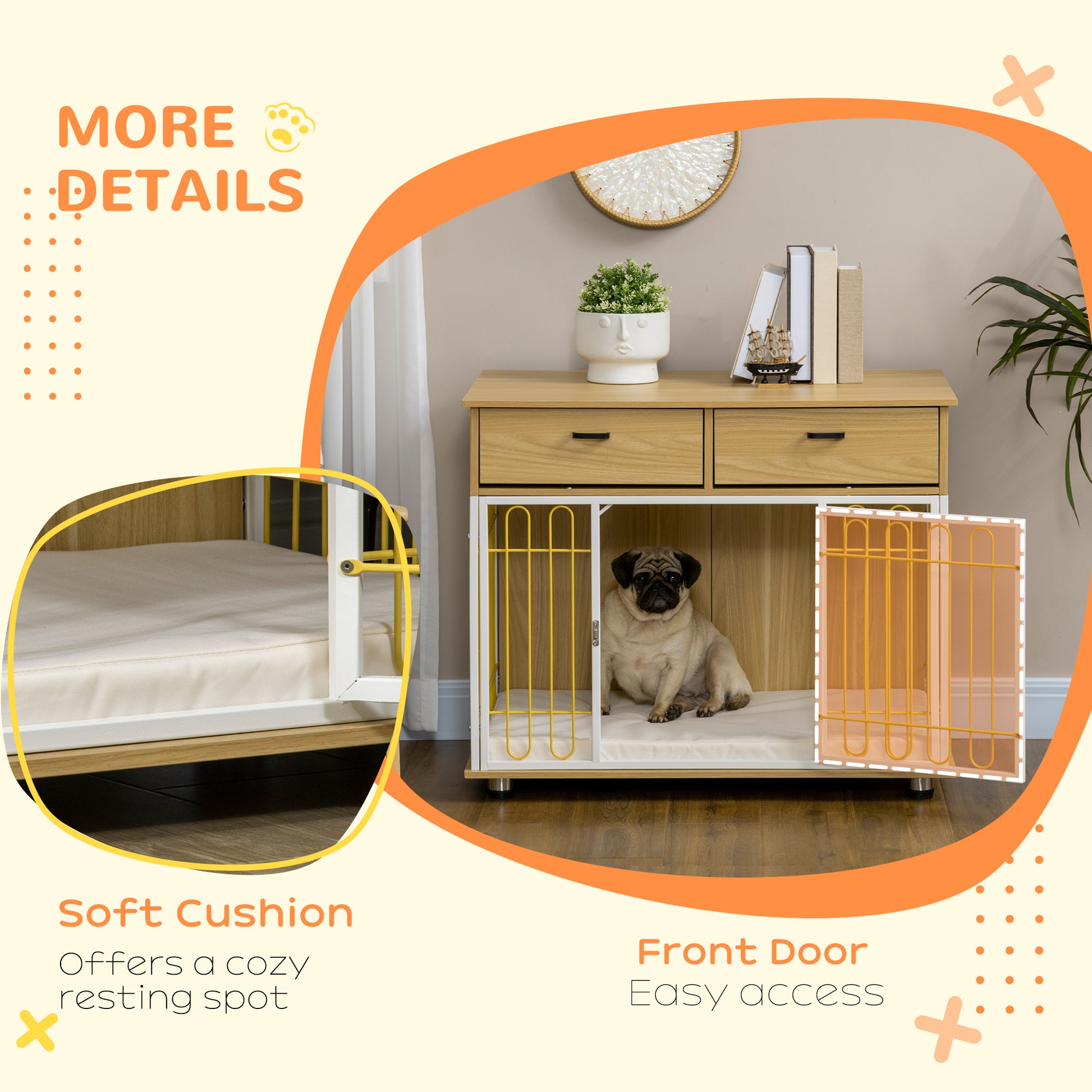 PawHut Dog Crate with Drawers, Soft Cushion, Lockable Door, for Small and Medium Dogs, Oak