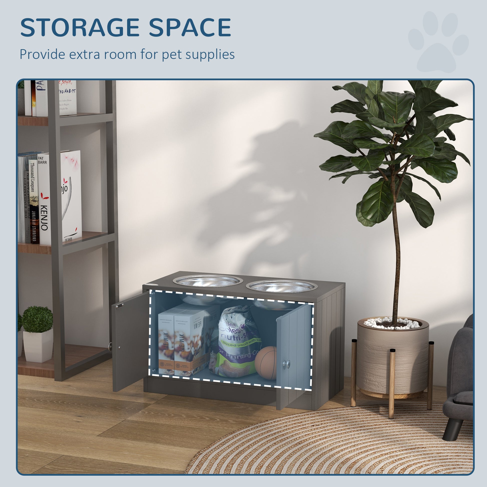 PawHut Elevated Dog Bowls with Storage Cabinet Containing Large 44L Capacity, Gray