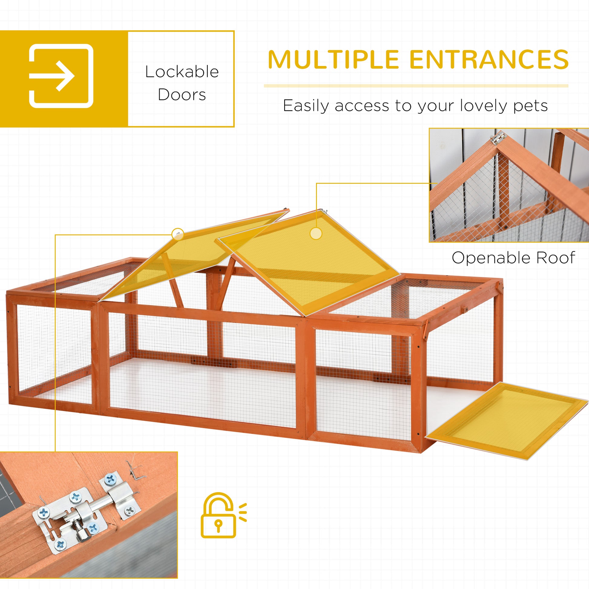 PawHut Large Wooden Rabbit Hutch Small Animal Habitat Enclosure Outdoor Run and Lockable Doors - Natural