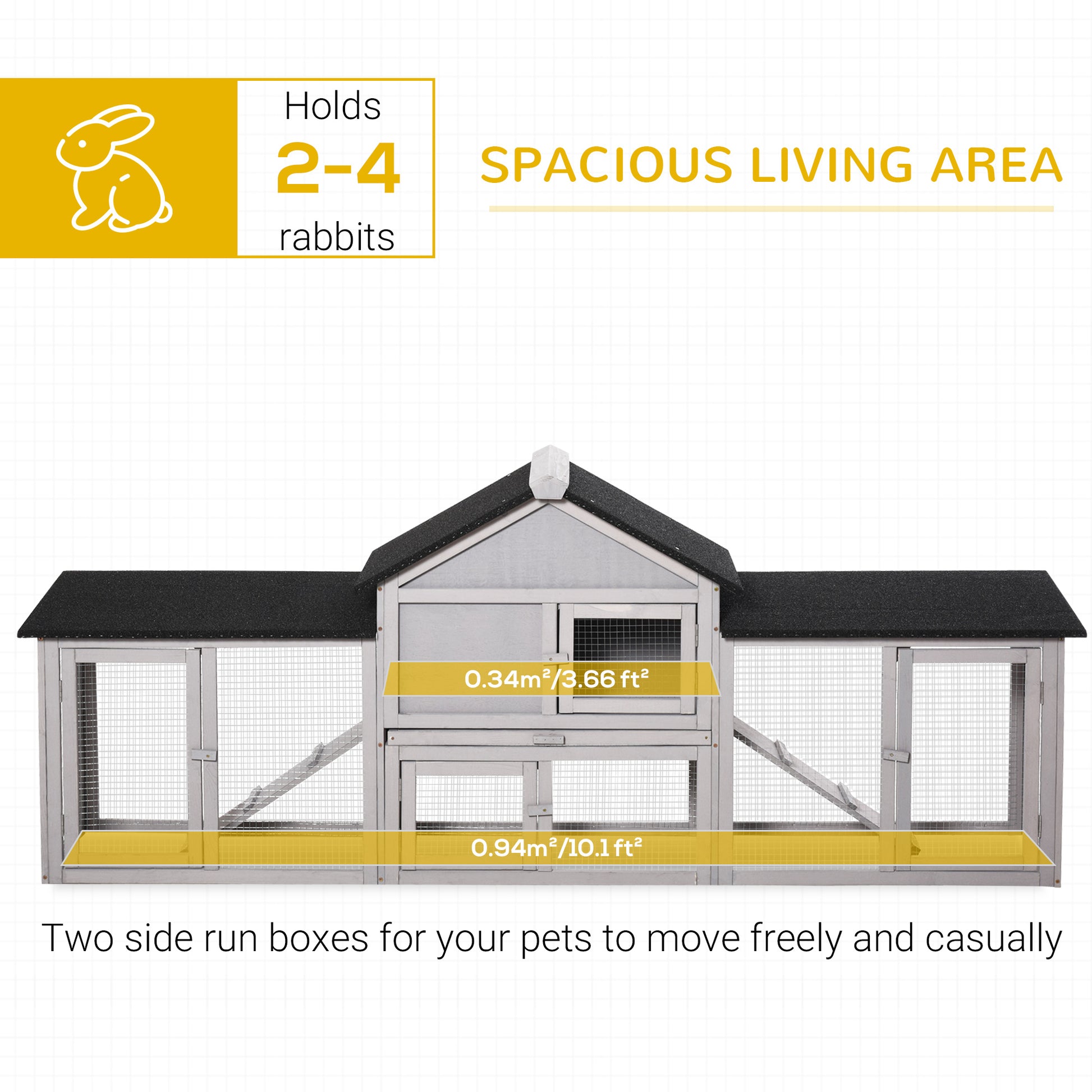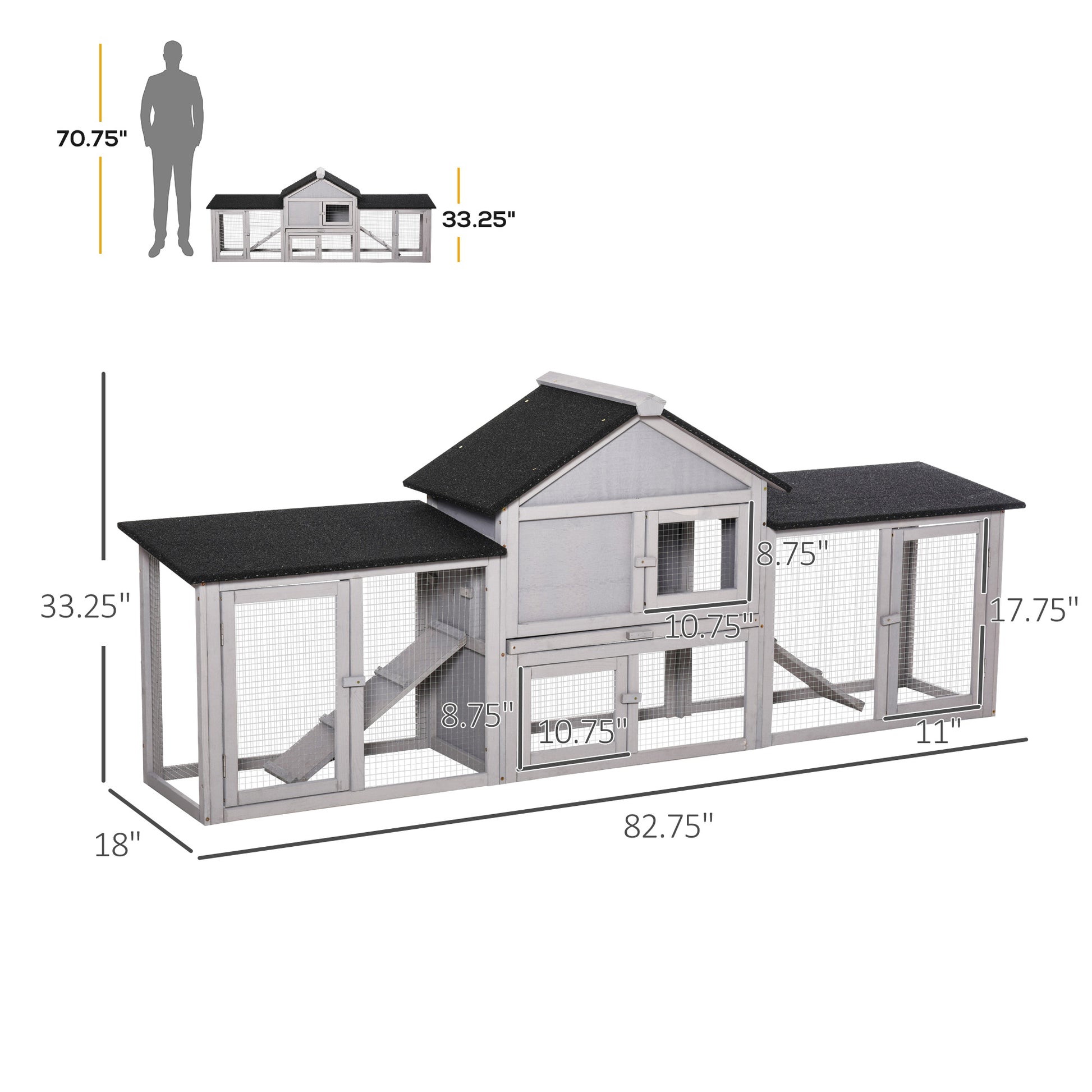PawHut Outdoor Rabbit House 83" 2 Story Deluxe XL Wooden Rabbit Hutch Big Bunny Cage w/ Ladder and Run, Gray