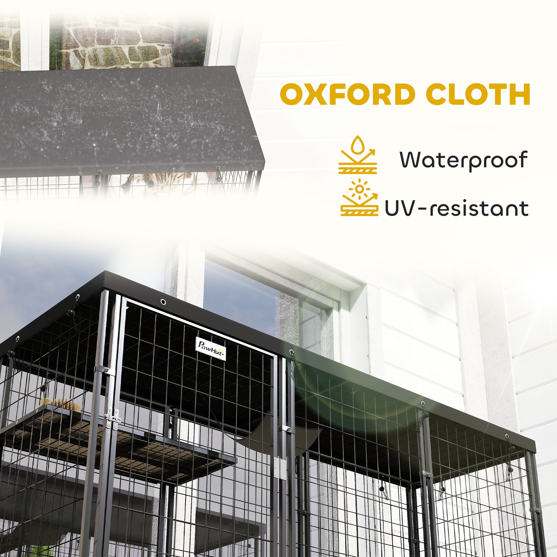 PawHut Weld Wire Catio Outdoor Indoor with Waterproof Cover, 4 Jumping Platforms, Hammock, for 1-3 Kittens, 69" x 22" x 62"
