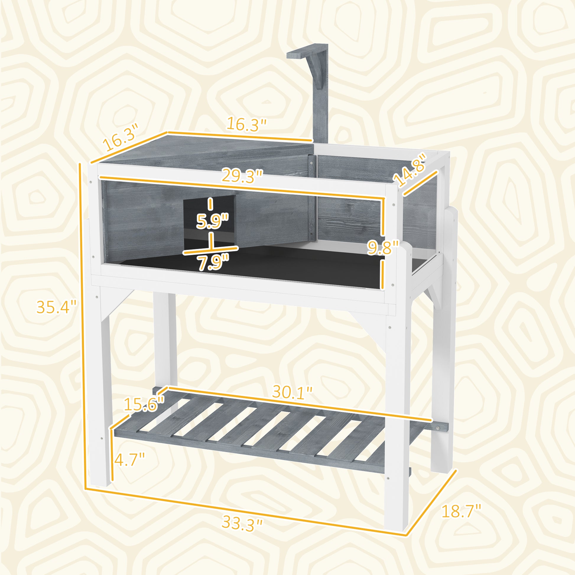 PawHut Wooden Tortoise Habitat with Storage Shelf, Tortoise Enclosure with Clear Windows, Openable Top, Lamp Holder, Gray
