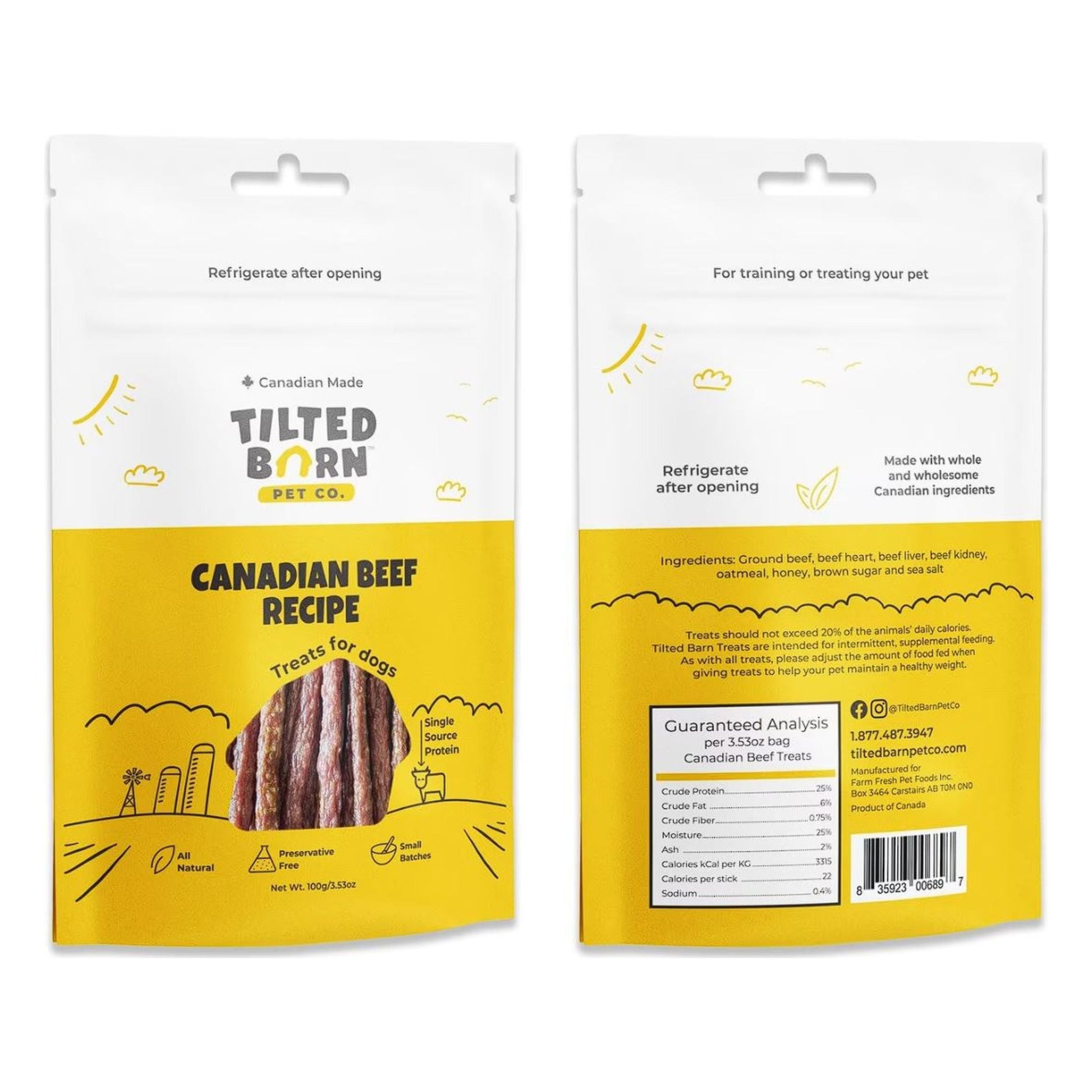 Reward your furry friend with Tilted Barn Pet Co Beef Recipe Treats For Dogs! They’re made in Canada with clean, simple ingredients and without preservatives. Created from single source protein—all natural beef—these su paw delicious, soft, meaty chews will be loved by even your most paw snickety pooch. Pepperoni style jerky treats are paw fect for training, an anytime snack or just because you love him. Proudly created in a woman owned company.