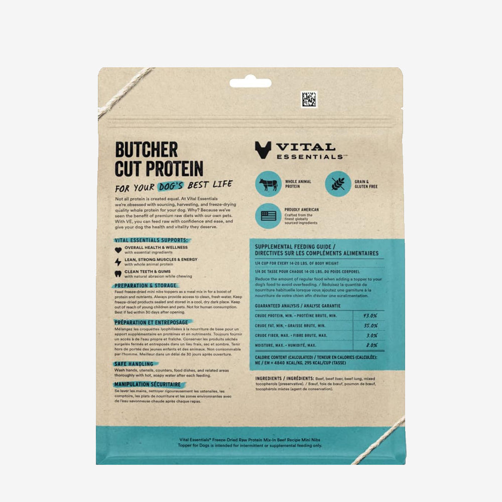 Vital Essentials Dog Freeze Dried Topper Beef 18oz.